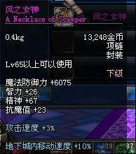 Lv65以上可以使用 魔法防御力+6075 智力+26 精神+67 抗魔值+23 攻击速度+3% 地下城内攻击速度+10%