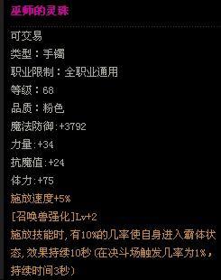 · · · · 等级:68 · 品质:粉色 · 魔法防御:+3792 · 力量:+34 · 抗魔值:+24 · 体力:+75