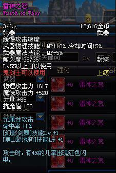 Lv55以上可以使用 光属性攻击 物理攻击590+ 魔法攻击505+ 力量65+ 命中率+1% 幻影剑舞Lv+1 崩山裂地斩Lv+1 攻击时,有4%的几率施放红色闪电。
