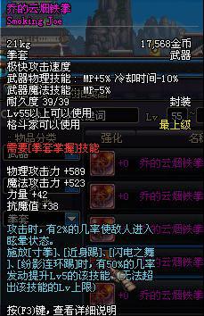Lv55以上可以使用 物理攻击555+ 魔法攻击500+ 力量+42 抗魔值+38 寸拳、闪电之舞、纷影连环踢施放时有50%的几率该技能Lv+5。