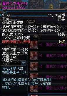 Lv55以上可以使用 物理攻击640+ 魔法攻击480+ 力量44+ 攻击速度+3% 近战攻击+20%