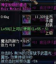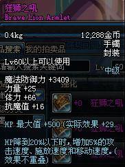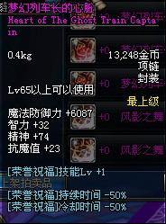 Lv55以上可以使用 魔法防御力+5200 精神+19 物理攻击时,有5%的几率使自身增加11%的力量 持续30秒 (不说了,也算超神器项链了,而且这个还不止11%)