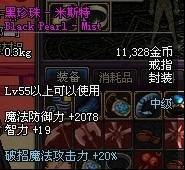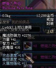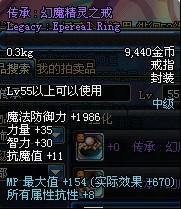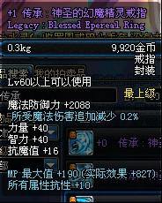 Lv55以上可以使用 魔法防御力+2075 智力+18 魔法攻击时,有6%的几率使自身增加9%的智力 持续30秒 (法系神器戒指之一,高几率触发,而且是魔攻触发,拉罗是物攻触发)