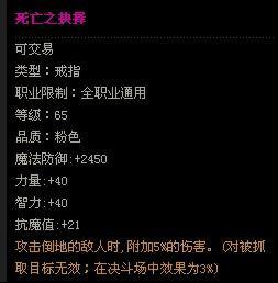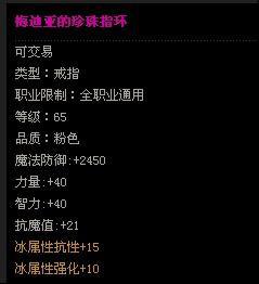 · · · 等级:65 · 品质:粉色 · 魔法防御:+2450 · 力量:+40 · 智力:+40 · 抗魔值:+21