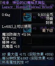 Lv60以上可以使用 魔法防御力+5194 智力+20 精神+56 抗魔值+18 HP最大值+171(实际效果+559) 每分钟恢复4.8HP (实际效果+16) 所有属性抗性+7 |