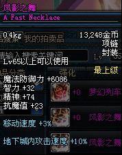 Lv65以上可以使用 魔法防御力+6086 智力+32 精神+74 抗魔值+23 移动速度+3% 地下城内攻击速度+10%