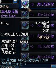 Lv60以上可以使用 魔法防御力+2074 力量+32 智力+32 抗魔值+8 HP最大值+46(实际效果+150) 所有属性抗性+4 |