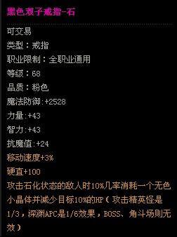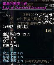 Lv55以上可以使用 魔法防御力+2115 力量+39 智力+38 抗魔值+11 攻击速度+2% 移动速度+2% 施放速度+2% |