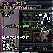 Lv60以上可以使用 战神的天袭项链 战神的天袭手镯 战神的天袭戒指