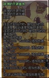 胜点追加伤害 胜点10001~15000时,追加伤害+1%~5% 胜点15001~25000时,追加伤害+6%~10% 胜点25001~50000时,追加伤害+11%~15% 胜点50001~90000时,追加伤害+16%~19% 胜点90001以上时,追加伤害+20% (在决斗场中胜点追加伤害无效) |
