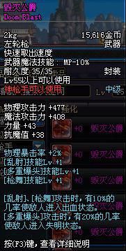 Lv55以上可以使用 物理攻击力:+400 魔法攻击力:+453 力量:+43 抗魔值:+38 物理暴击+3% 命中率+1% 物理、魔法伤害增加5% [弹药主宰]技能射程 +5% [弹药主宰]的附加发射几率 +10%